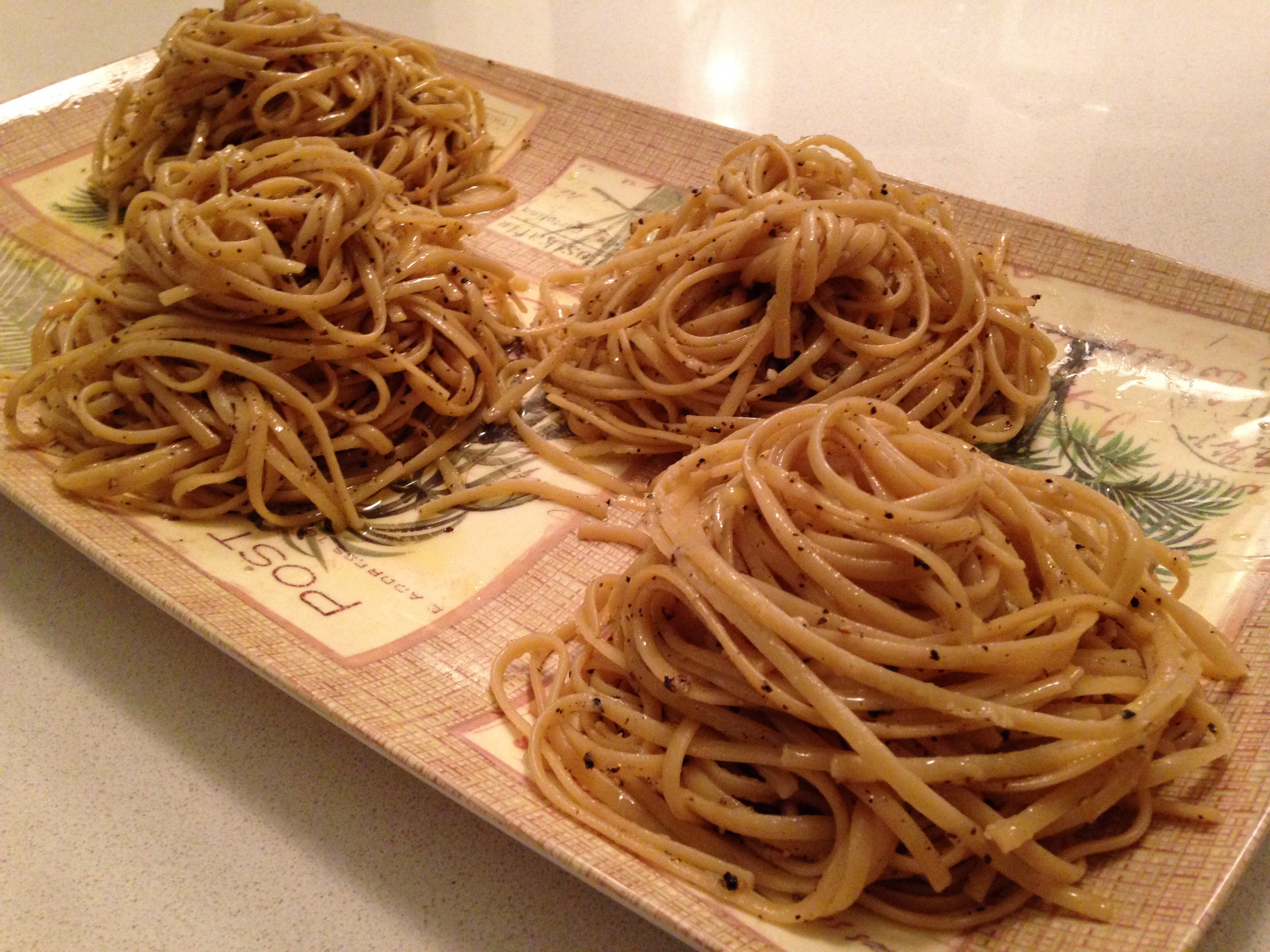 For our second course, we had the Bavette Cacio e Pepe which I made. It wasn’t hot anymore by the time I transported it to John’s and we got around to the second course. Some people chose to eat it room temp, others gave it a quick 30 second nuke in the microwave. I tried it both ways and preferred it warm, which brought out the peppery-ness. But whichever way people ate it, everyone said they enjoyed it.