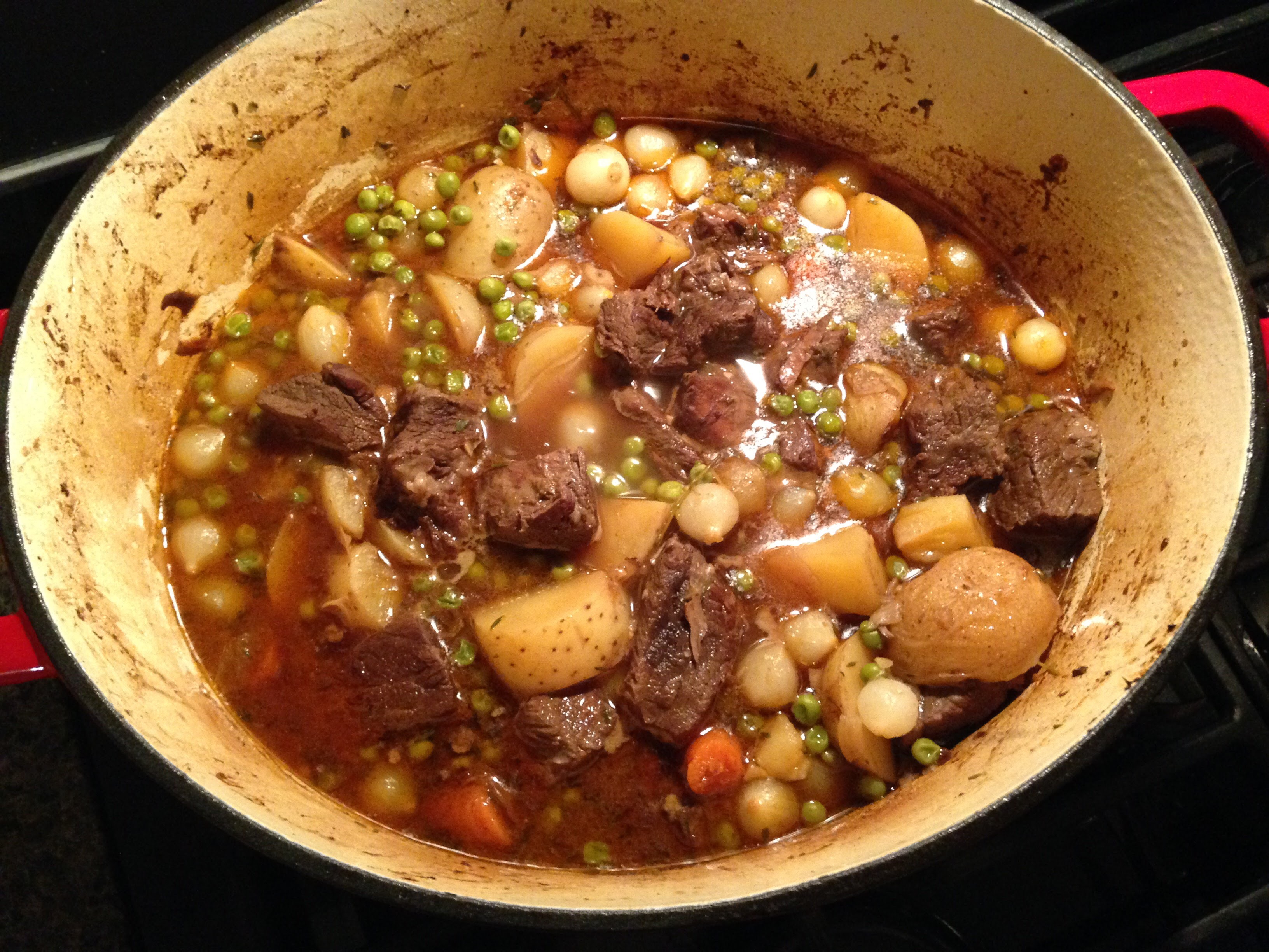 We finished the meal with John’s beef stew. It wasn’t from the cookbook because the post office lost the copy he had ordered, but it was a yummy stew. With potatoes, onions, carrots, and peas, it was a hearty and warming dish for the start of the winter months.