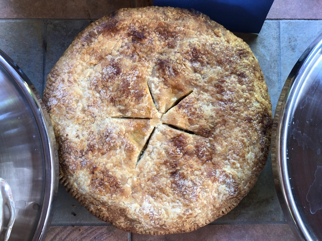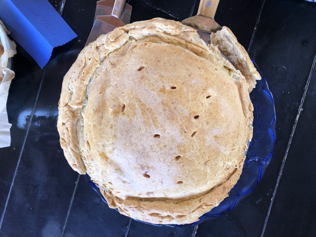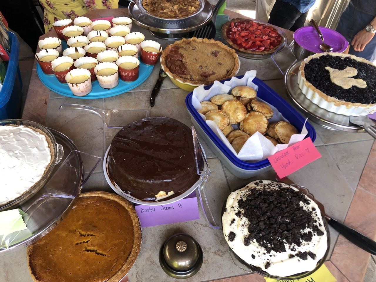 We were lucky once again to have Barbara host our big group of pie lovers in her amazing outdoor space. With so many pies, there was no way to get them all into one picture. And in order to taste them all, I pretty much had to take one bite of each pie – which I was happy to do as they were all delish!