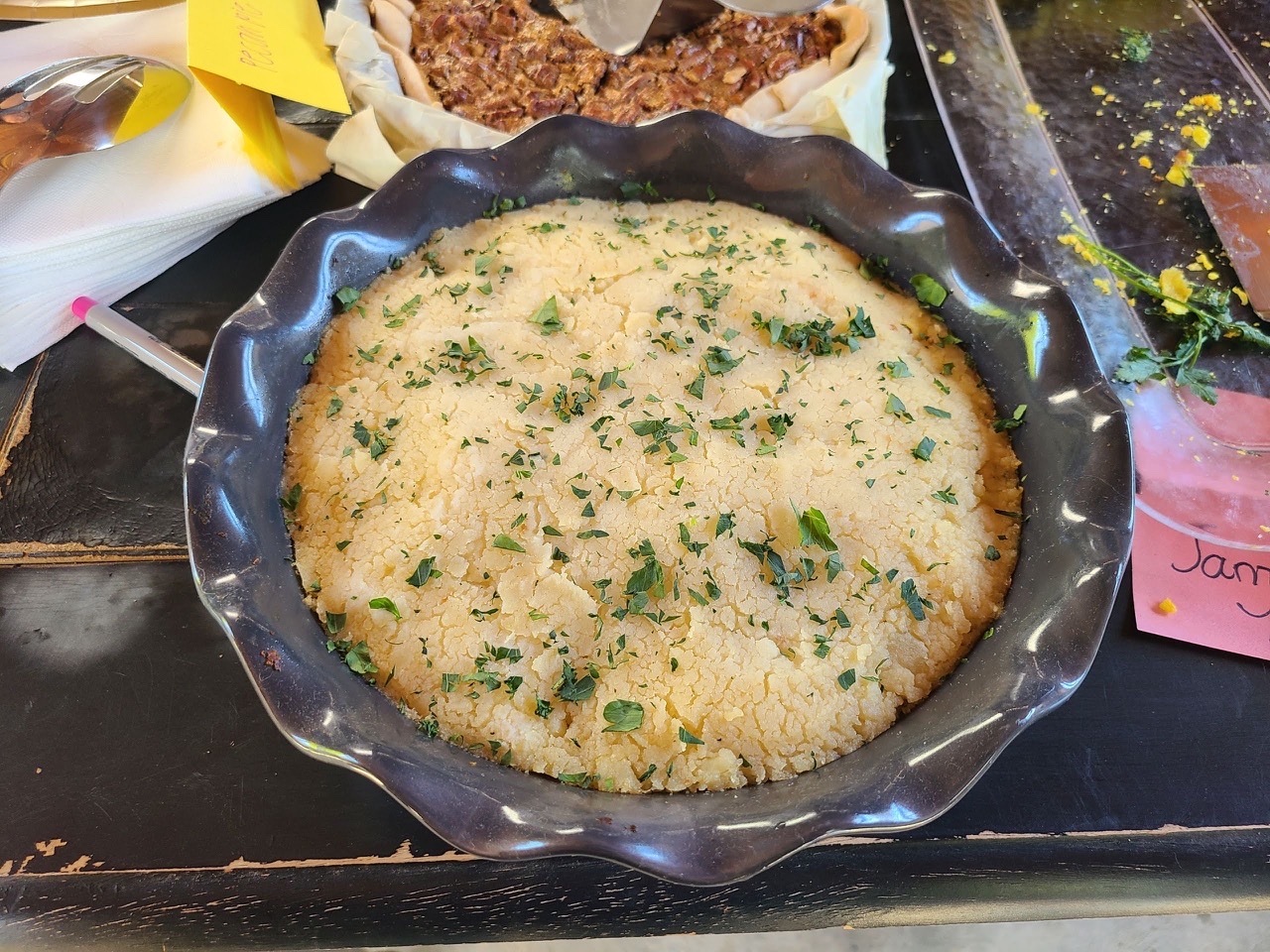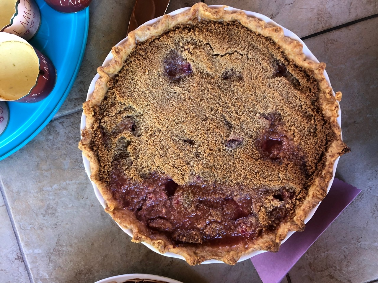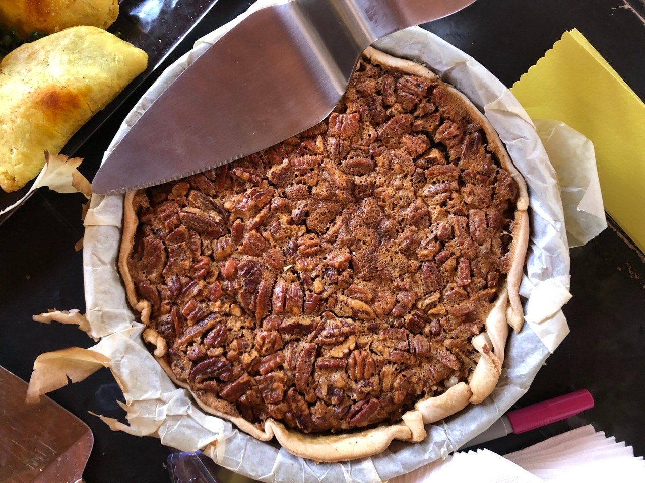 We were lucky once again to have Barbara host our big group of pie lovers in her amazing outdoor space. With so many pies, there was no way to get them all into one picture. And in order to taste them all, I pretty much had to take one bite of each pie – which I was happy to do as they were all delish!