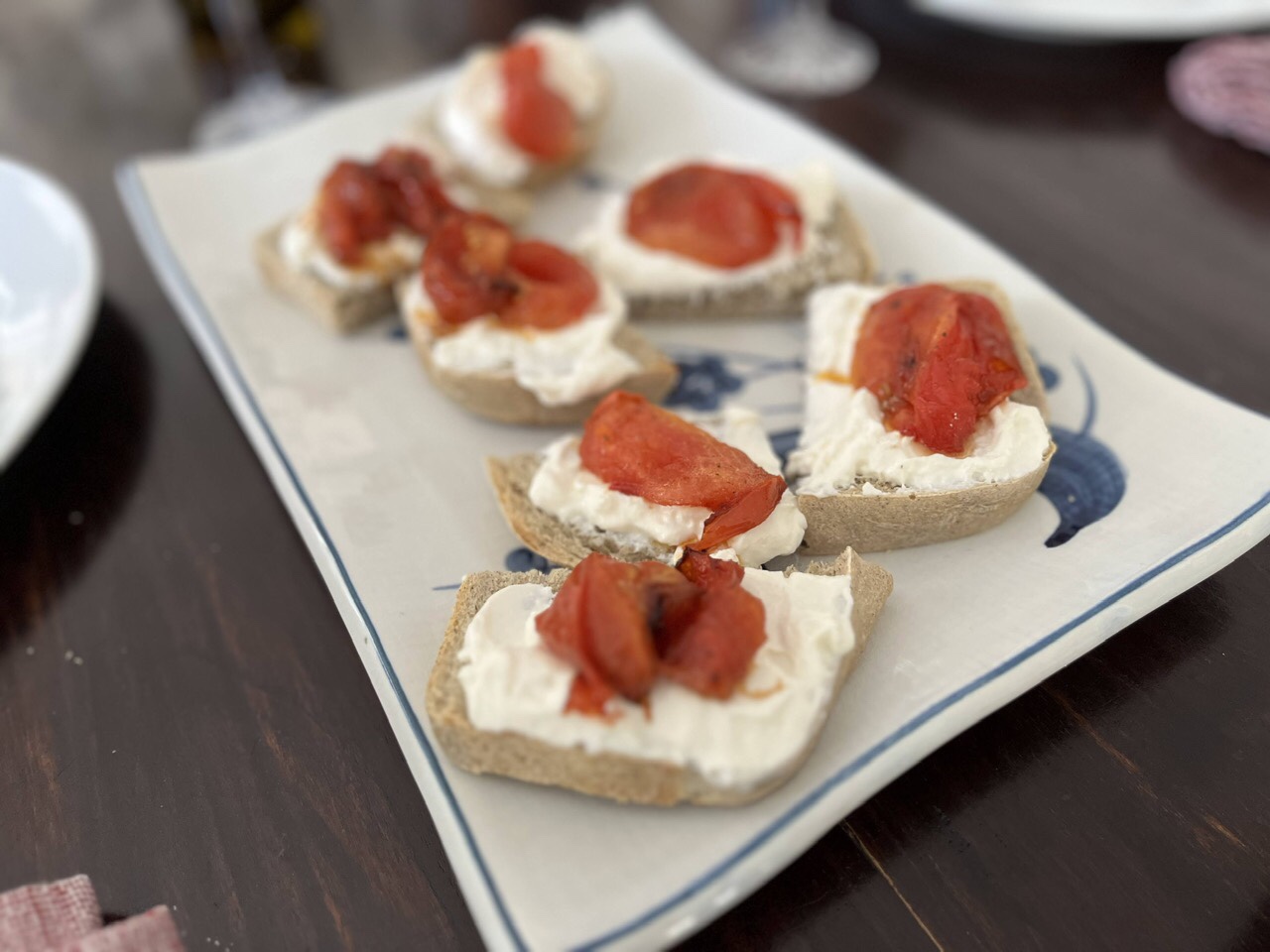 Anthony made Labaneh topped with Roasted Sheet Pan Cherry Tomatoes (well actually he used tomatoes larger than cherry tomatoes). Labaneh is strained yogurt, though Anthony strained his homemade kefir. It was a creamy, tart spread which was nice on his homemade bread topped with the roasted tomatoes, but also great with the harissa-honey chicken dish that Ximena made.