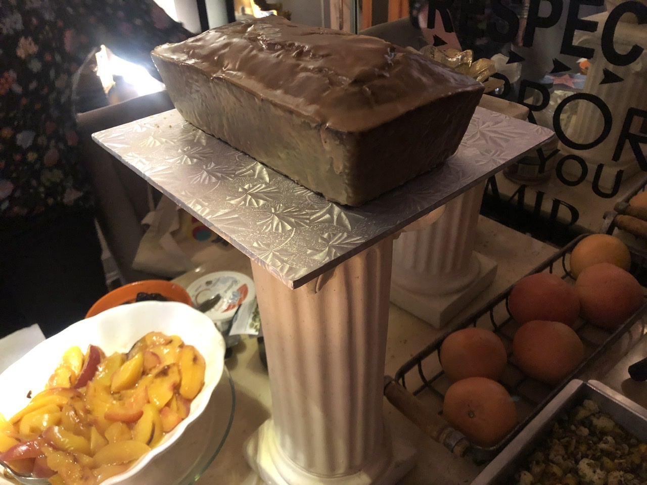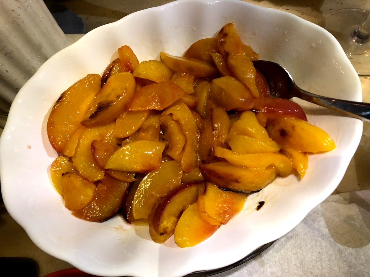 Revi made Spiced Maple-Broiled Peaches. There were vanilla creme fraiche and maple vinegar syrup toppings. I didn’t realize that when I took the picture or when I first tried the peaches. Even by themselves they were tasty, then I added creme fraiche and I liked them even better. Then I discovered there was also syrup, and I was in heaven.