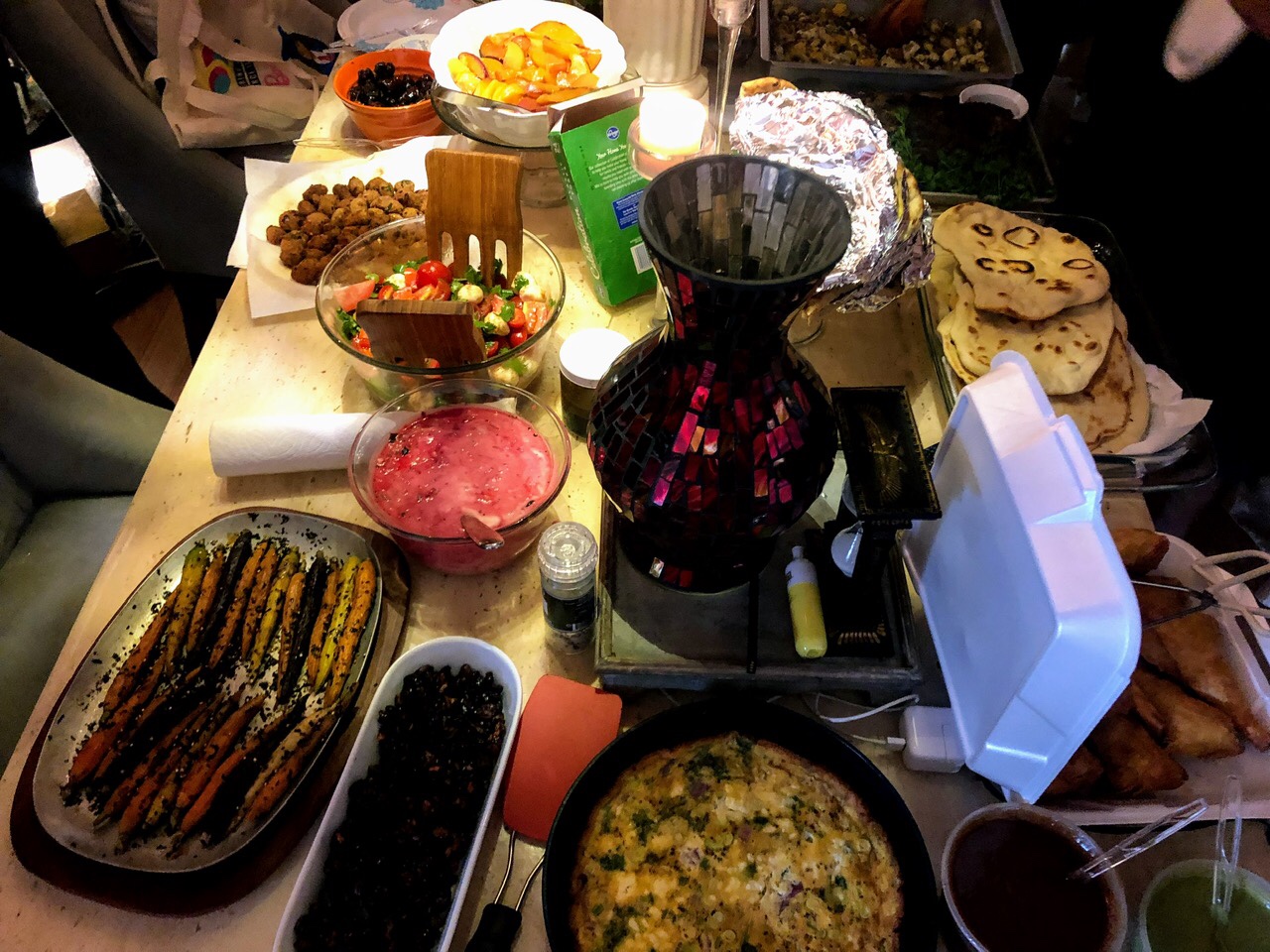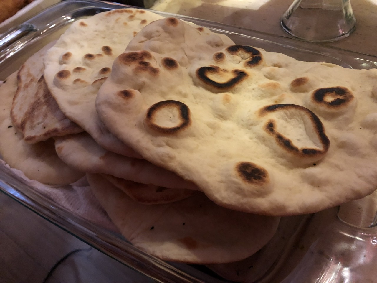 Jeff made Naan. He said he did quite the battle with the smoke alarm during the process and felt like he almost burned his house down, but we applaud him for his efforts because look how beautiful the naan came out. It was good to eat with the Rainbow Root Raita.