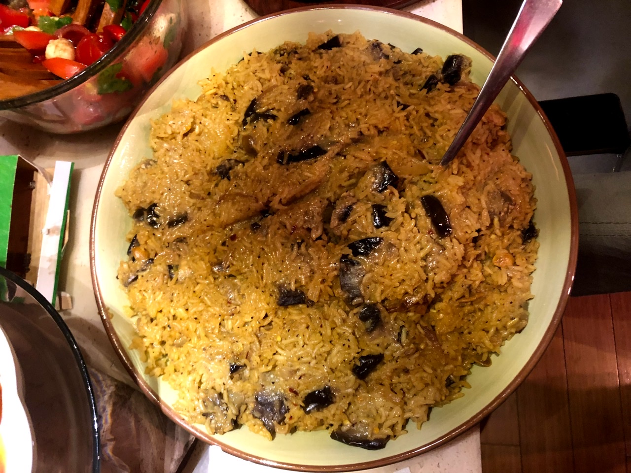 Barbara made Eggplant Pilaf. A giant platter of rice makes me happy. I think she must have made a quadruple recipe. I only had a small container to take some of the leftovers home, but now I’m wishing that I had figured out a way to pack up more.