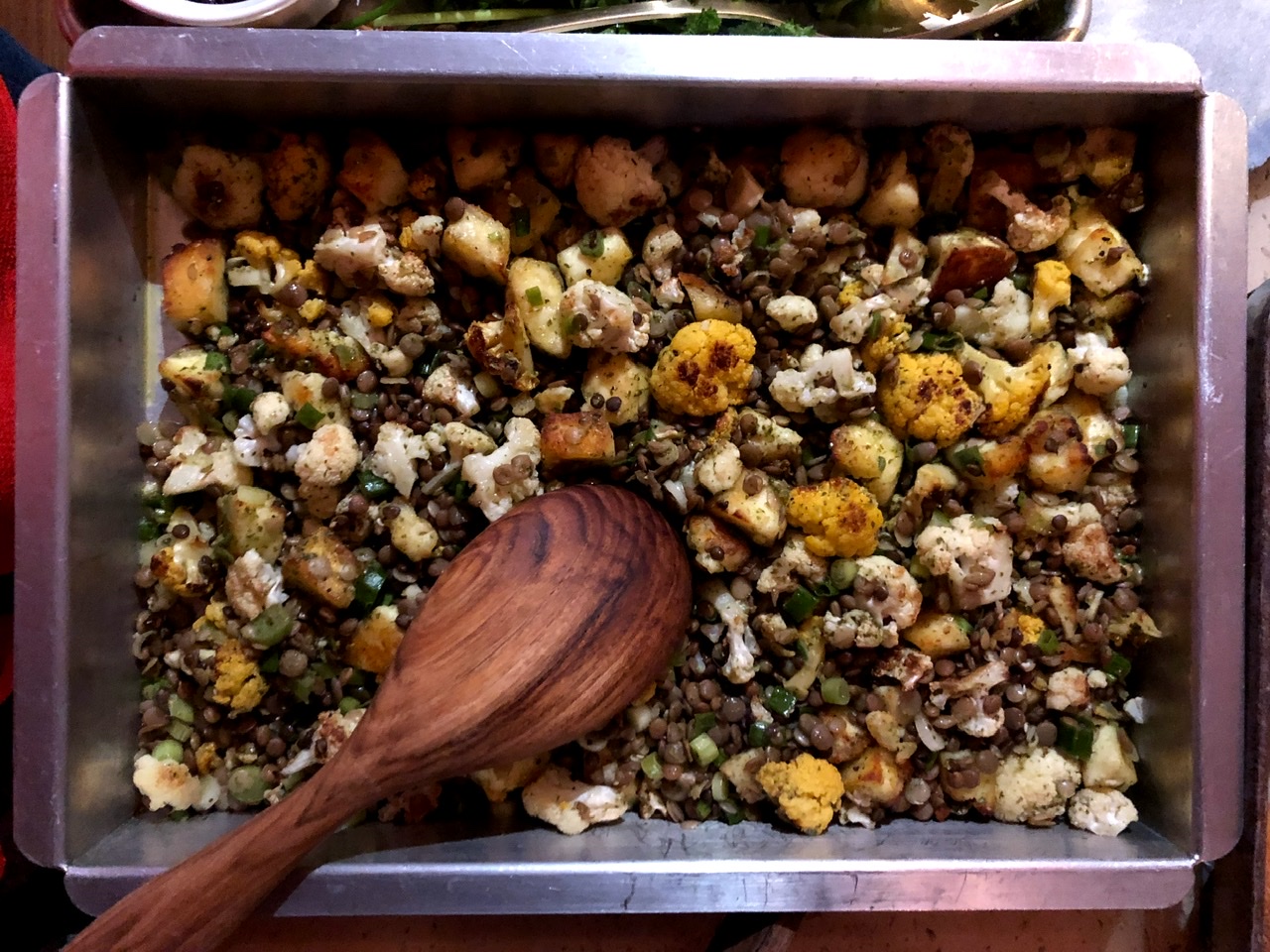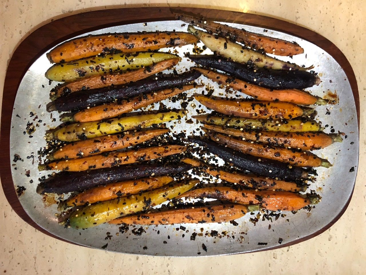 Brian also made Roasted Young Carrots with Sesame, Chili, and Nori. This was more Japanese than Indian, with the carrots sprinkled in Sharma’s version of the Japanese seasoning togarashi. But I like togarashi, so this carrot dish was just fine by me.