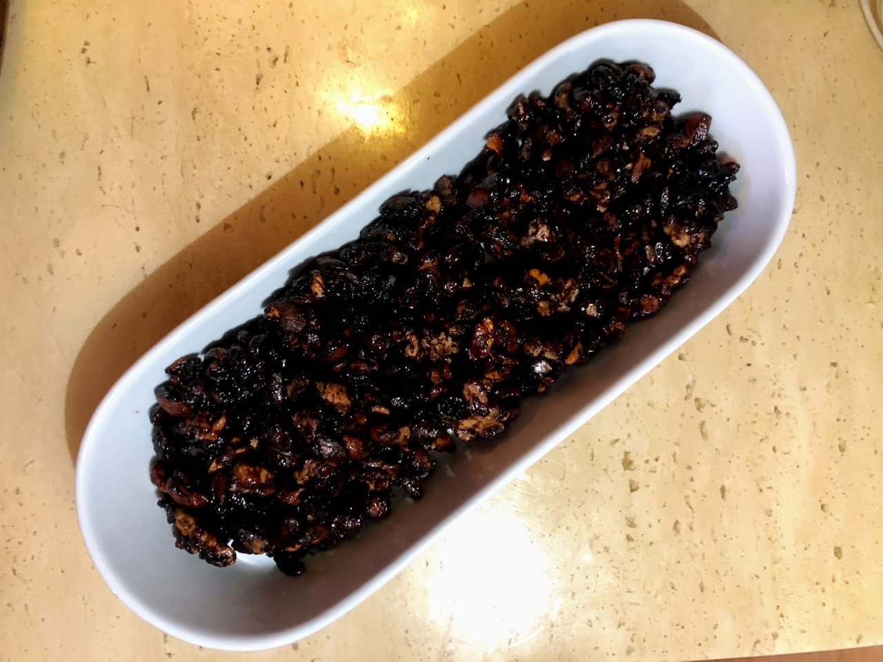 Brian also made Chile-Sumac-Pomegranate Nuts. He said they went from sticky to over-done in less than 5 minutes, I’m guessing due to the sugar content. Bummer, because I like the idea of a sweet/sour/spicy flavor combo, but it was hard to completely appreciate in tandem with the slightly burnt flavor.