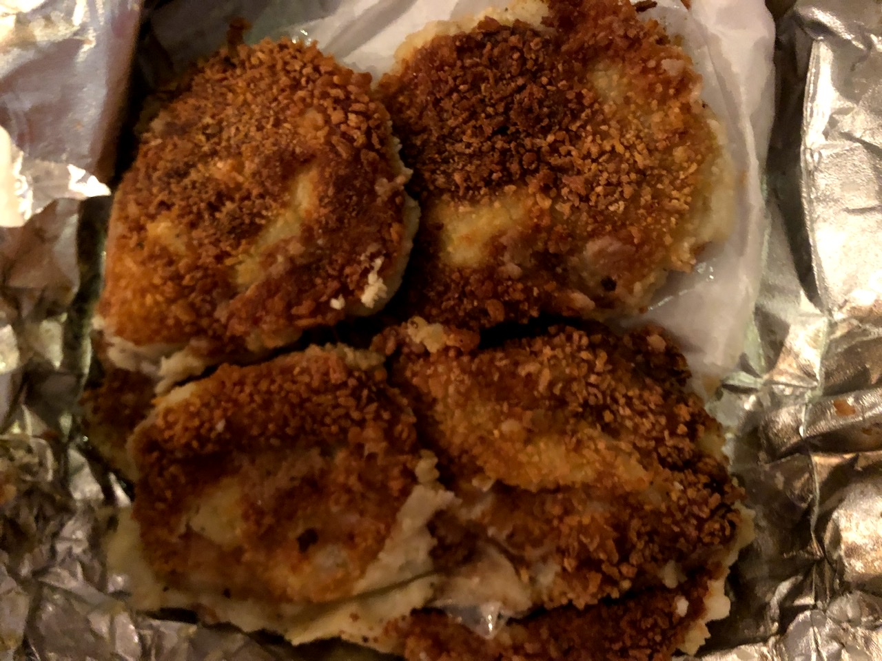 Barbara also made Ground Lamb and Potato “Chops” with Sambal Oolek. Once again, Barbara made a ton, and I’m so glad. This was definitely a winner. The breadcrumbs on the outside of the patties were crispy deliciousness, the mashed potato was creamy goodness, and I loved the flavor of the Sambal Oolek-seasoned lamb filling.