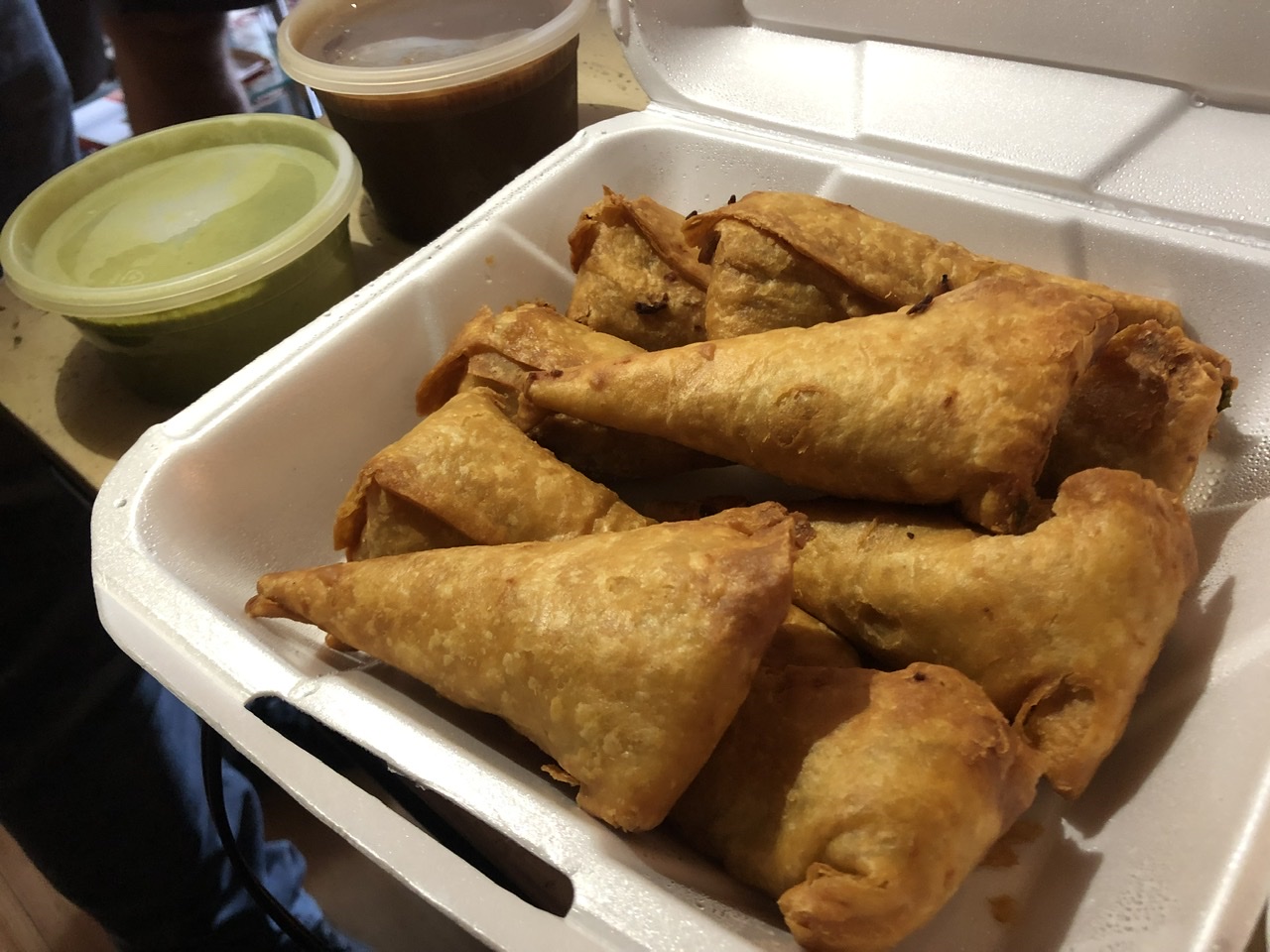 Superna provided potato and pea samosas and garlic naan. She ordered these in, as at the last minute she wasn’t able to cook. But that’s ok – stuff comes up, and these were delicious even if not from the cookbook.