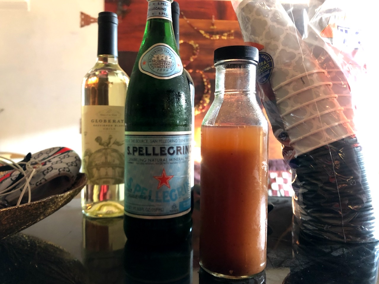 Brian made Ginger and Tamarind Refresher. We mixed it with an equal amount of sparkling water. I am a big fan of tamarind so was very happy to have this drink. The combination of the bubbles, the freshness of the ginger, and the tartness of the tamarind was super refreshing.