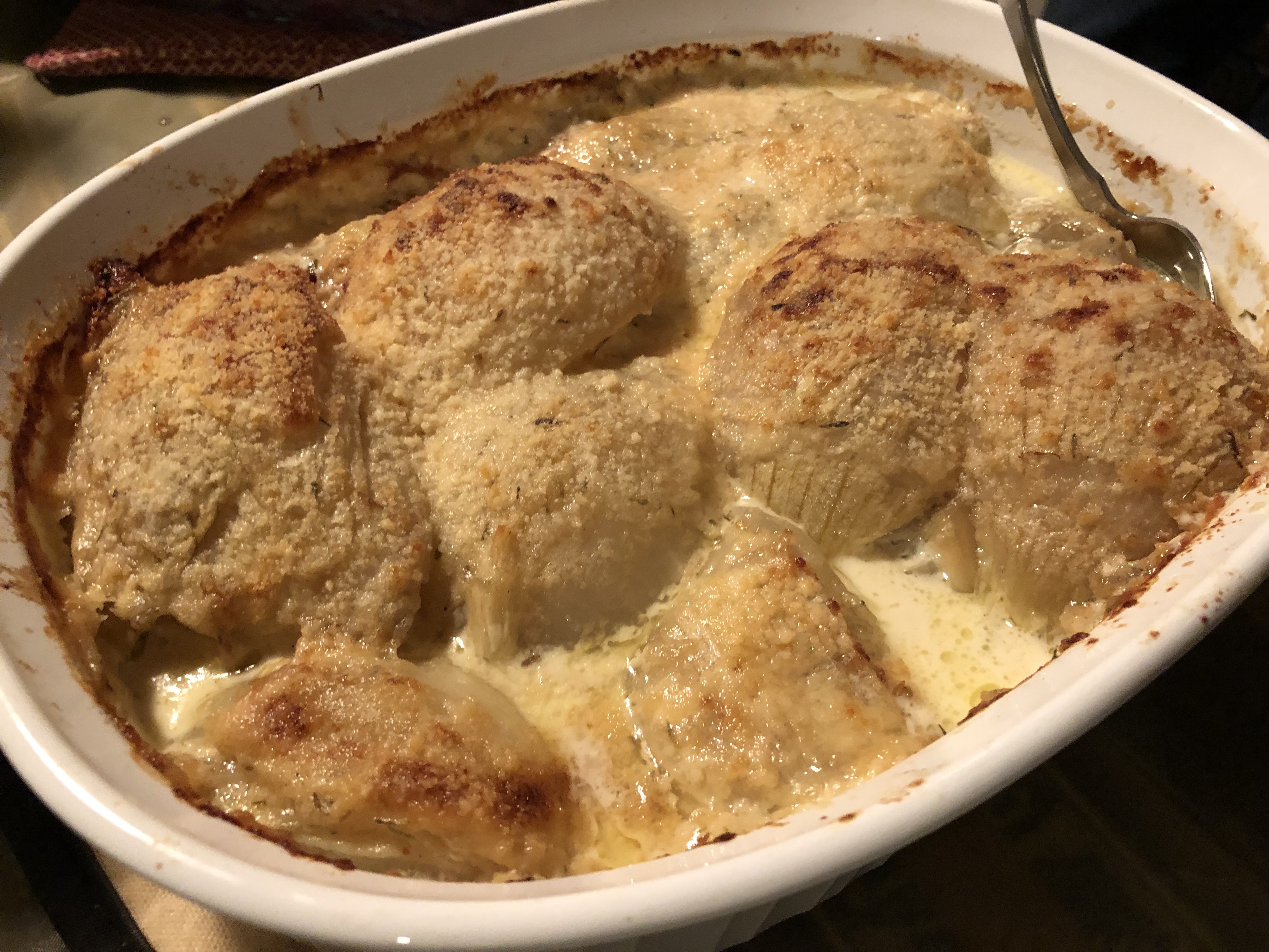 Suzy made Chicken Patties with Rosemary and Pancetta. These were not bad, but nothing that really stood out, as though they were missing something to give them punch. The sauce was just chicken stock that the patties were cooked in, and didn’t add much. Perhaps they needed more rosemary? Suzy mentioned that the recipe called for 3 sprigs, but rosemary sprigs can vary quite a bit in size.