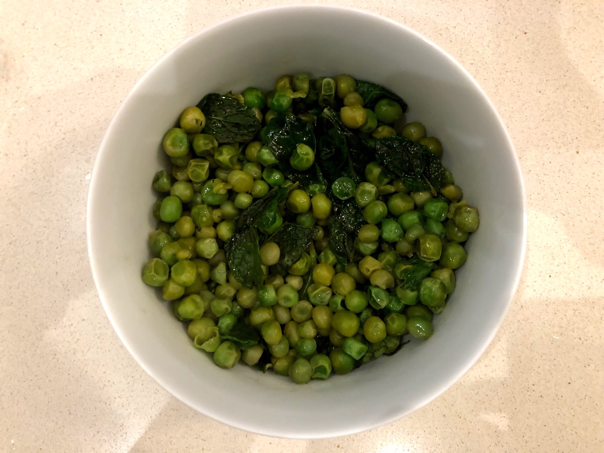 I made Peas with Lemon and Mint. I liked the freshness that the lemon and mint brought to this dish, and it was nice to have peas with a little bit of twist as it seems like peas are always served in such a basic manner. They were dead simple to make and I’d definitely do them again, though I’d just cook the peas until hot rather than the 8 minutes the recipe called for, so they would stay bright green instead of starting to turn brownish. Also it makes a tiny portion!
