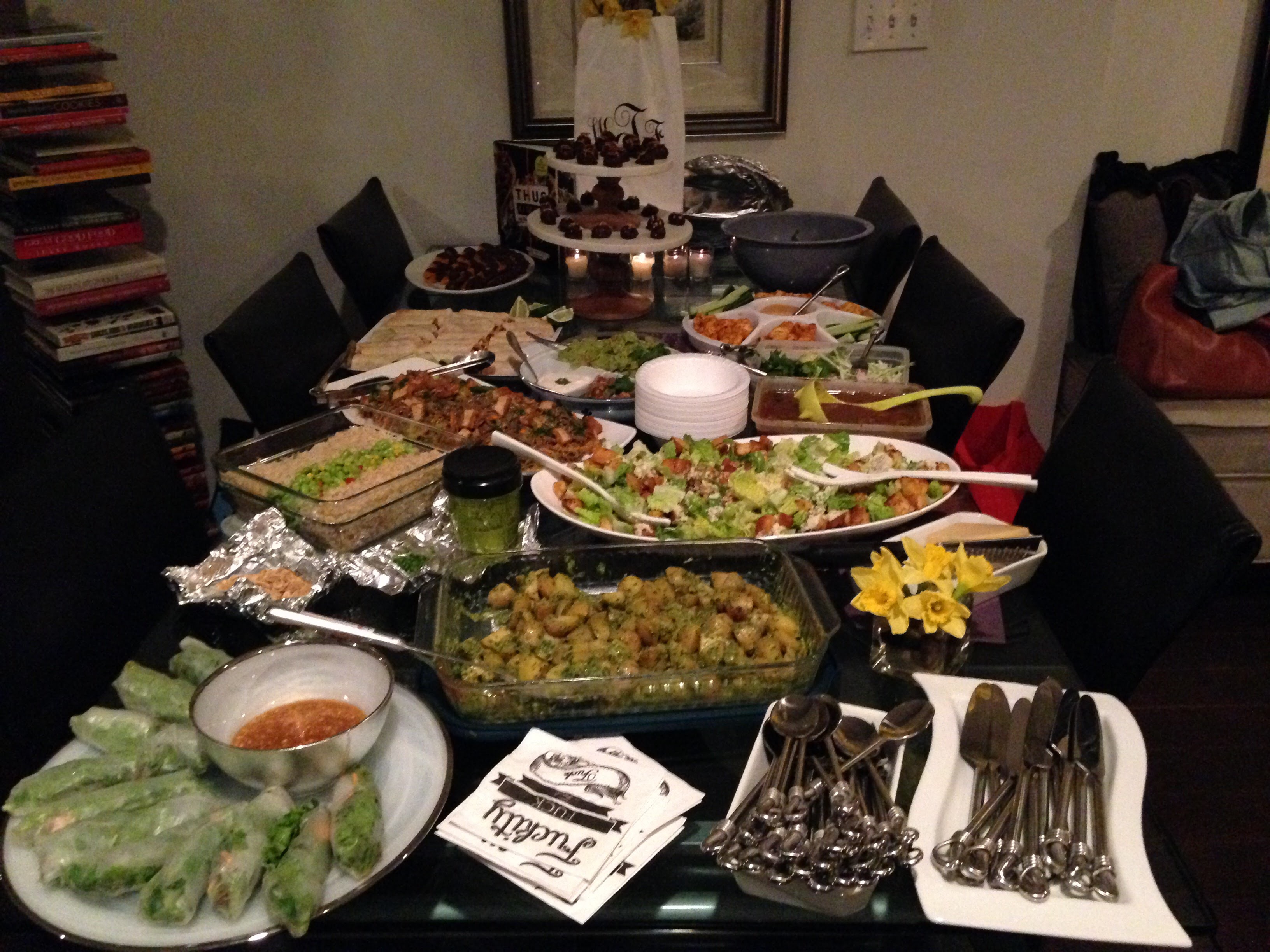 When Shayna hosts, she always does such a nice job adding little thematic touches – notice the F*ckity F*ck napkins. We had 5 newcomers, who we were excited to welcome into our growing group of regulars! With so many people coming to our potlucks, it’s getting harder and harder to fit all the food onto a plate and then into my stomach. We couldn’t even put all the dishes on one table. Not that I’m complaining. So without further ado, let’s see what was on the motherf*uckin’ menu…