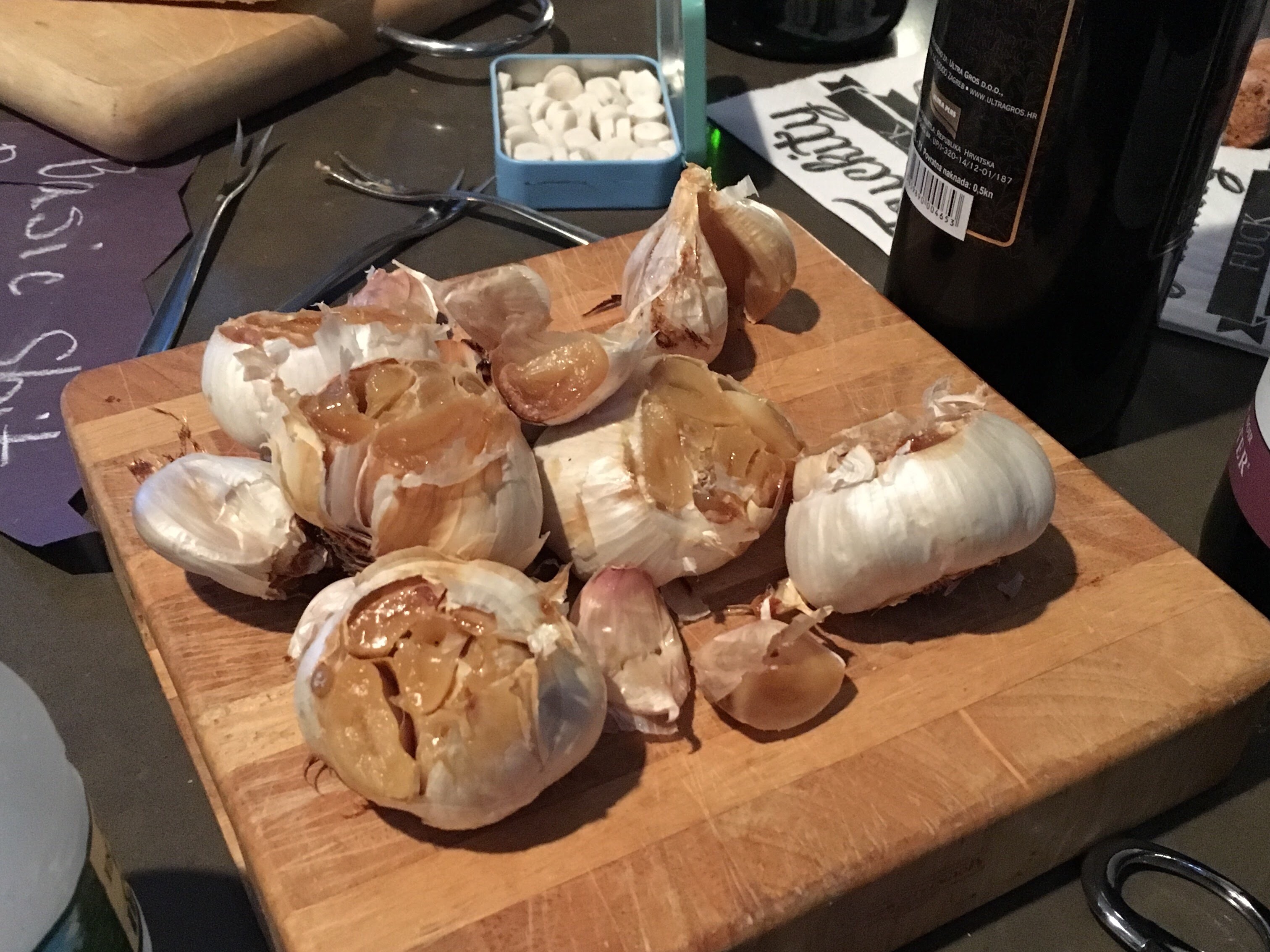Shayna made Roasted Garlic. Pretty standard recipe, which is just fine because basic roasted garlic is delicious. It is awesome on bread with butter. Or if you’re Cindy, just squeezed straight into your mouth.