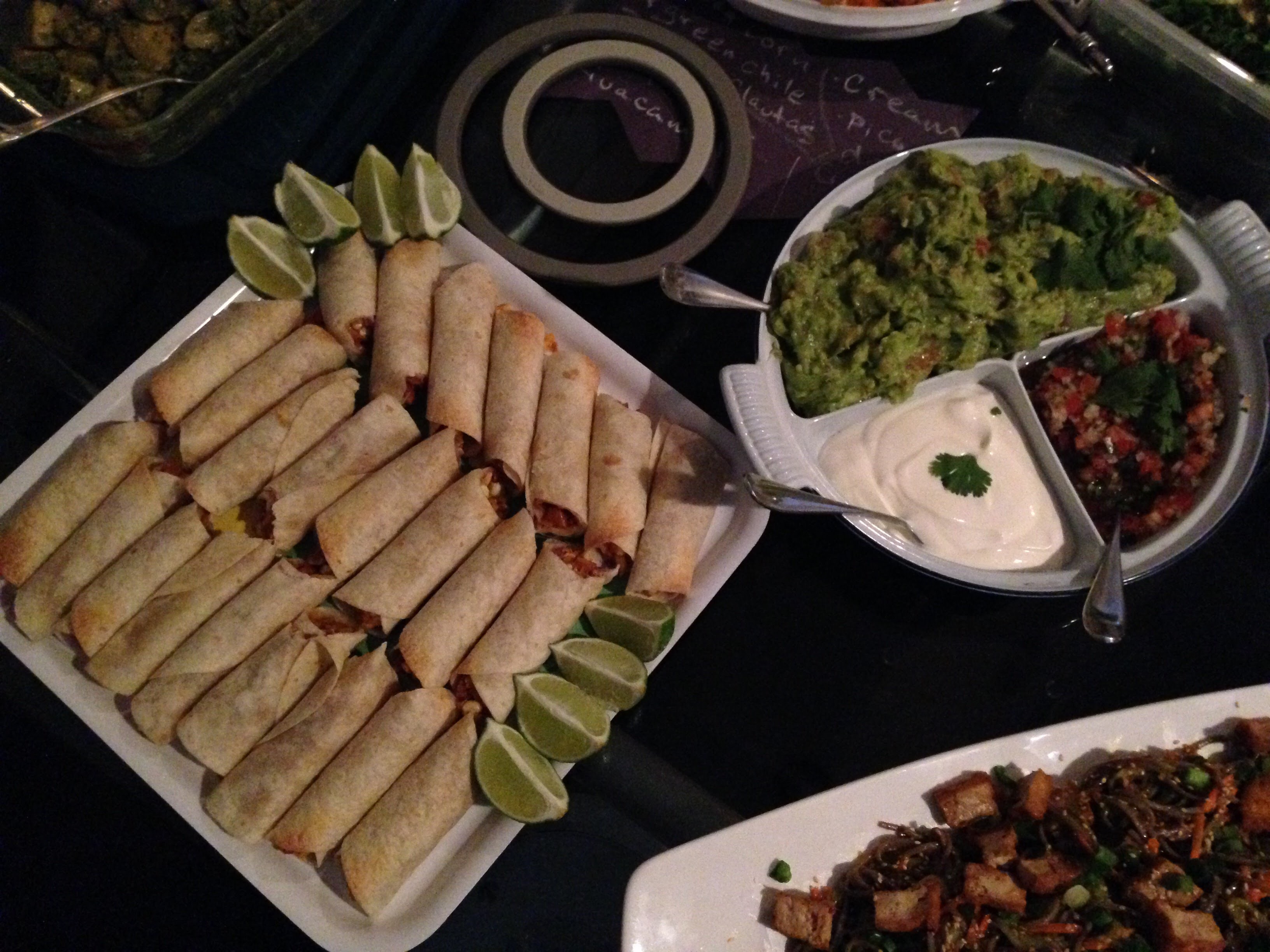 Alyssa made Sweet Corn and Green Chile Baked Flautas. She made her own crema and salsa to accompany them, and Michael contributed his grapefruit guacamole. Maybe it’s just me, but I prefer my Flautas fried. I mostly used these as a vehicle to get the yummy salsa and guac in my face.
