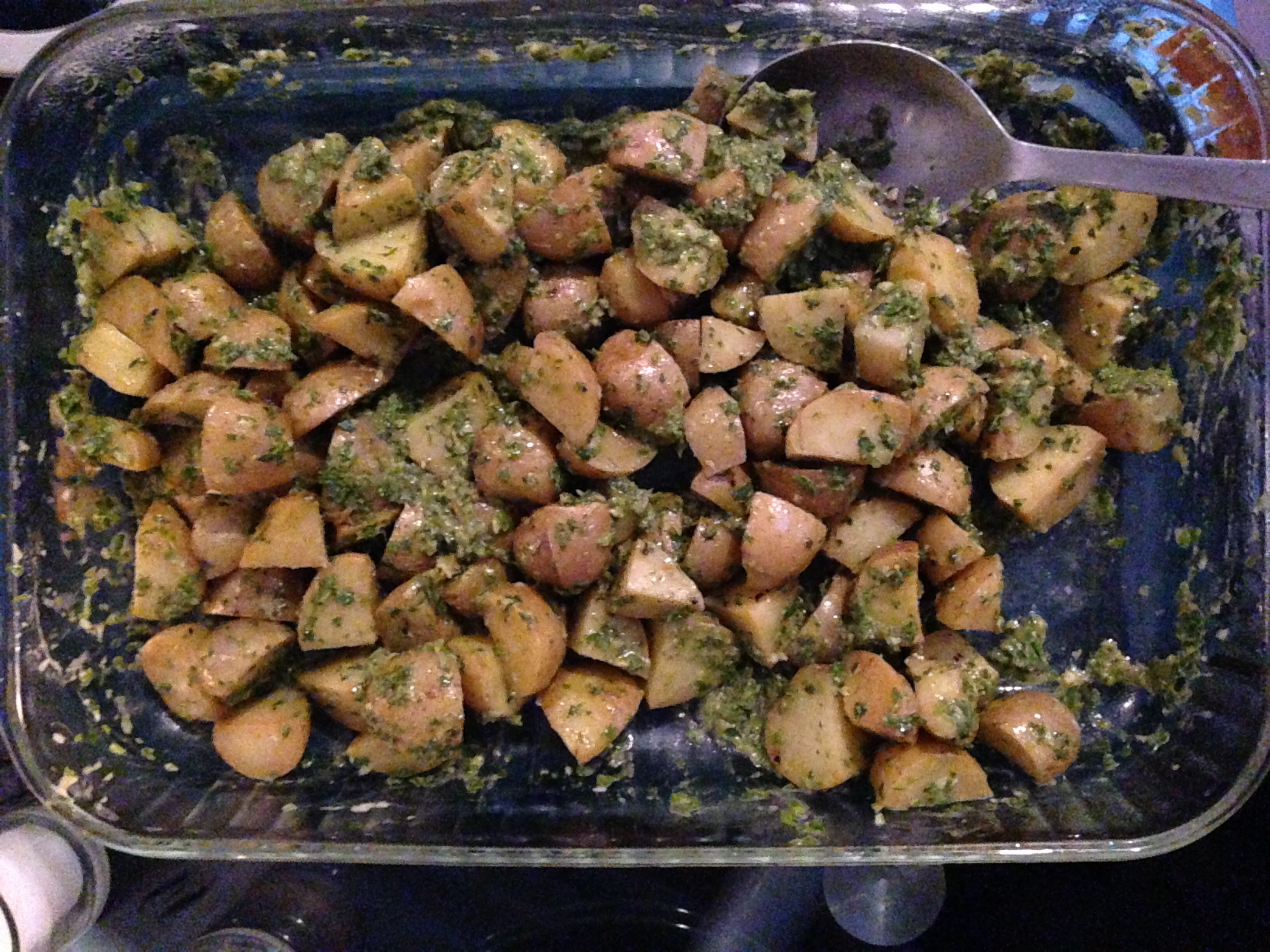 Kelly made Roasted Potato Salad with Fresh Herbs. I am not generally a fan of potato salad. This one wasn’t the mayonnaise-y kind, so it actually wasn’t bad as far as potato salads go for me.