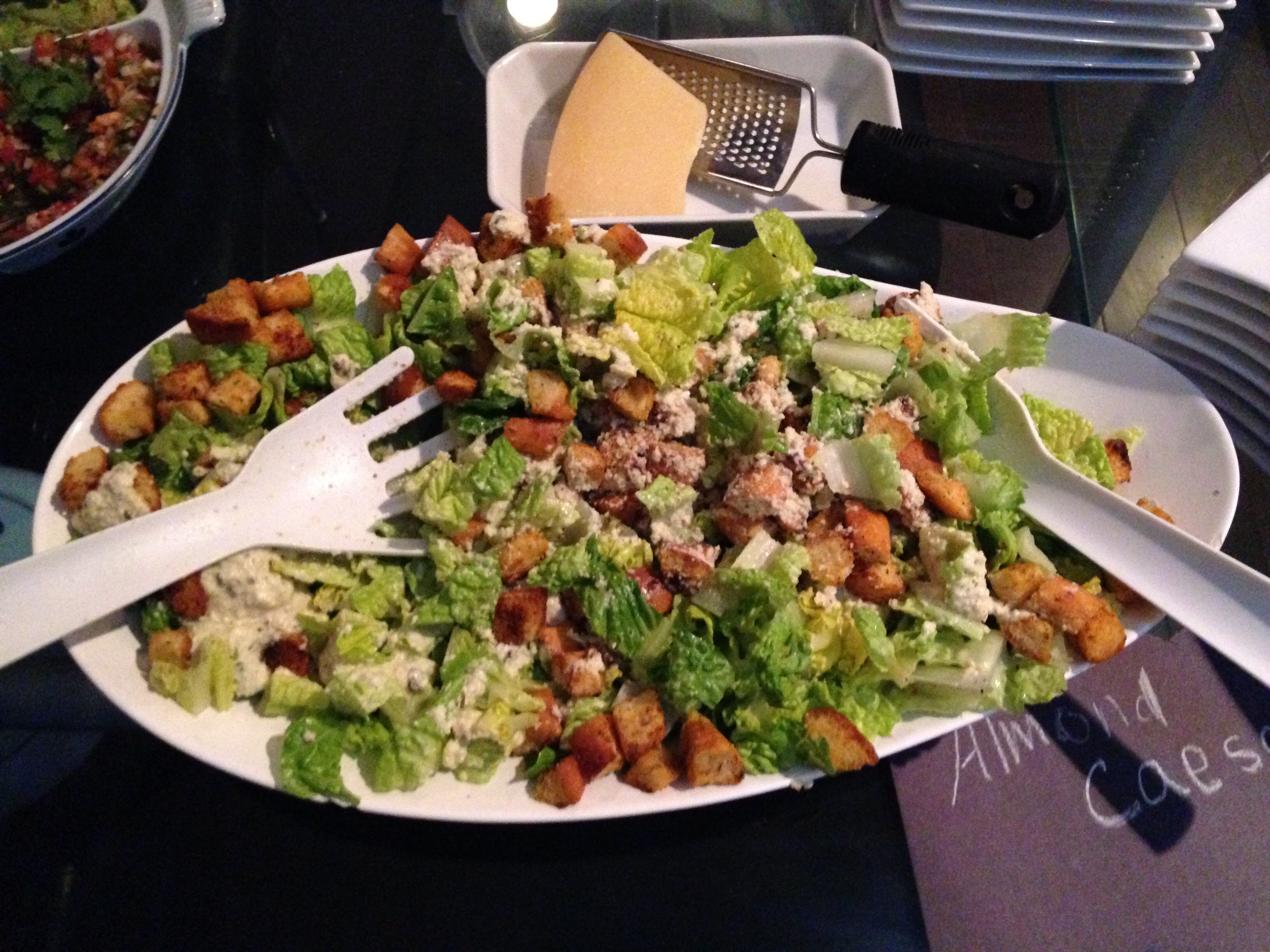 Shayna also made Almond Caesar Salad with Homemade Croutons. I like the funk that anchovies and/or Worcestershire sauce add to Caesar salads, but this recipe doesn’t use either of those and I found it to be more citrus-y.