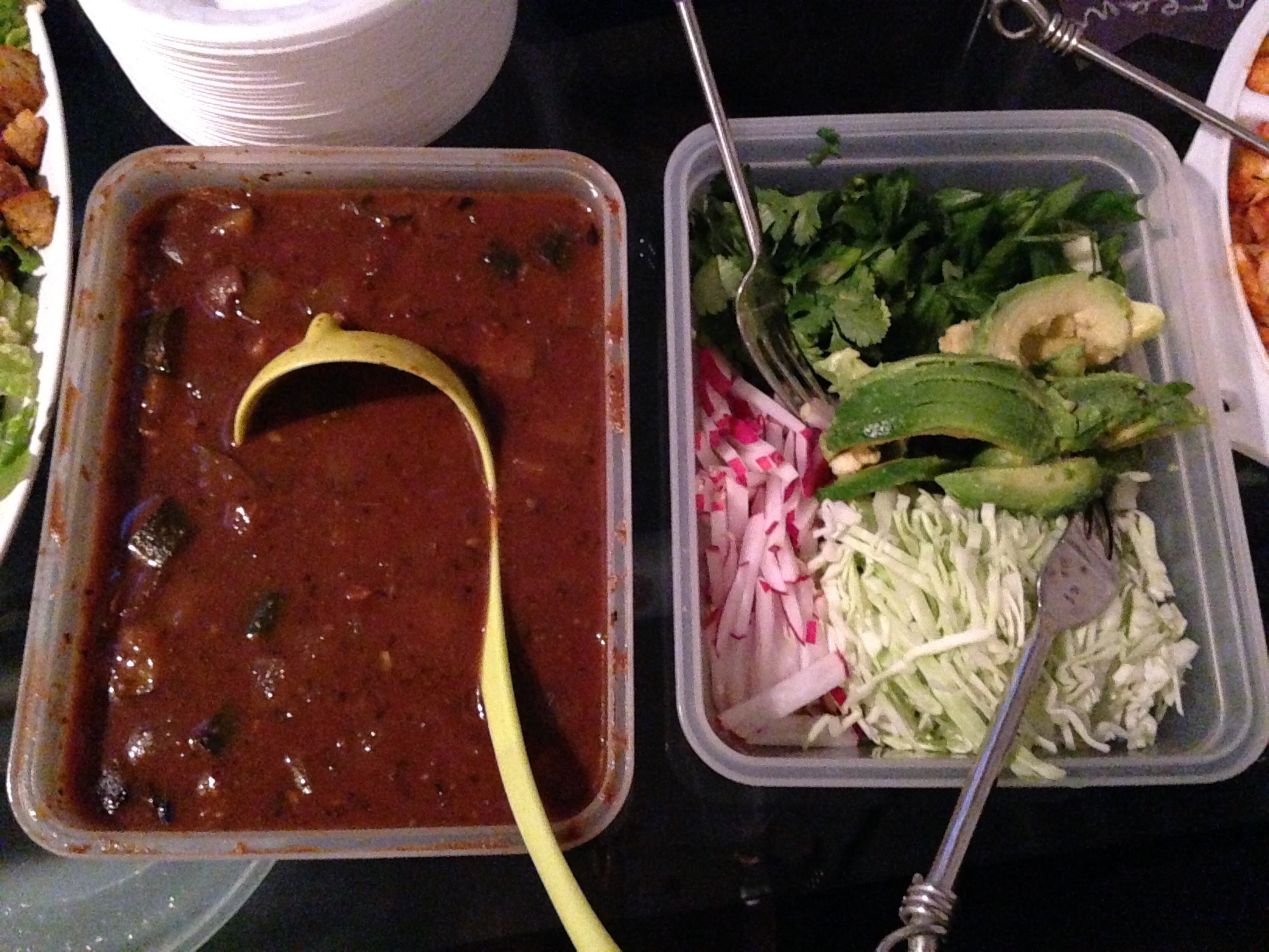 Sheana made Pozole Rojo. This Pozole didn’t live up to the Pozole I ate at some of my friend’s houses when I was a kid. Perhaps that’s not a fair comparison, but it seemed to lack depth even once dressed with all the toppings.