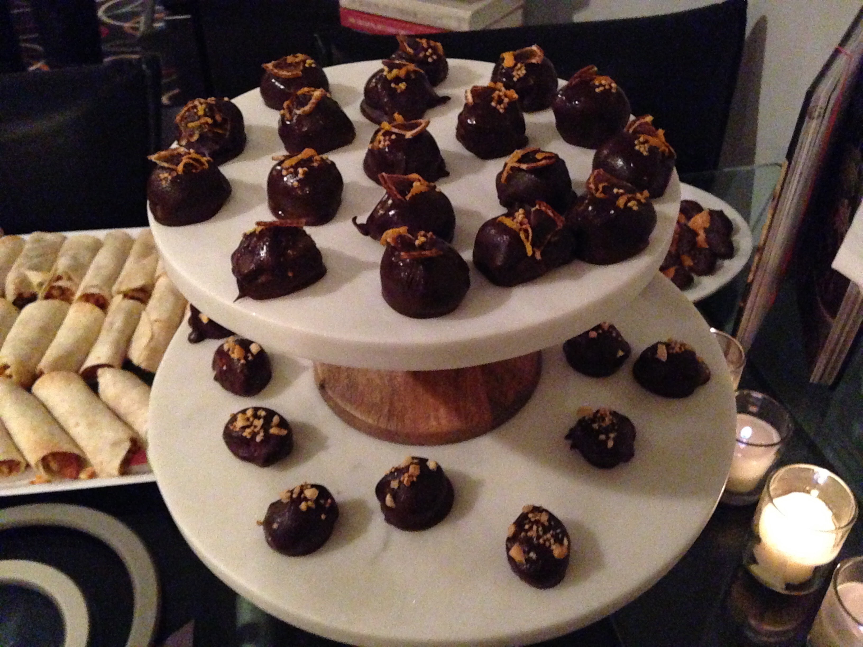 Heather also made Crispy Millet and Peanut Butter Buckeyes. She made one batch that followed the recipe, and a second batch that she spruced up with orange liqueur and orange zest. The basic ones were good, the orange ones were better.